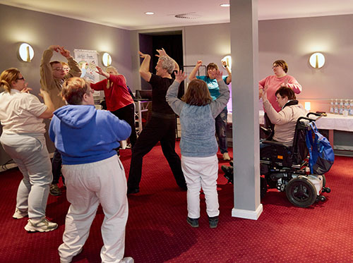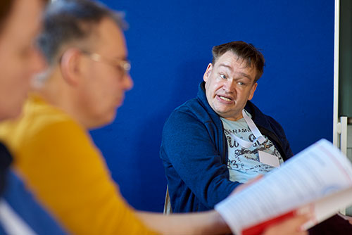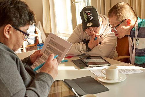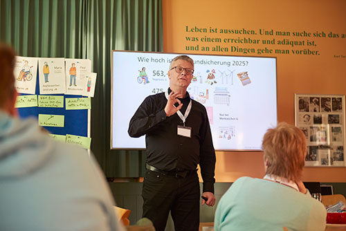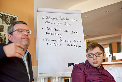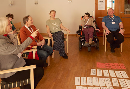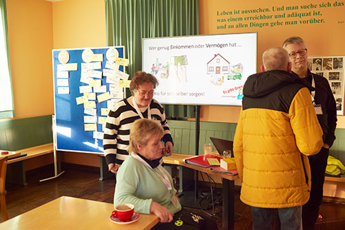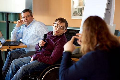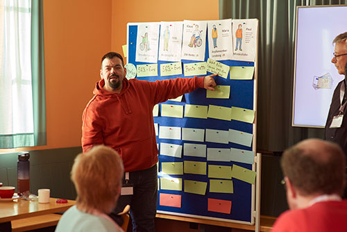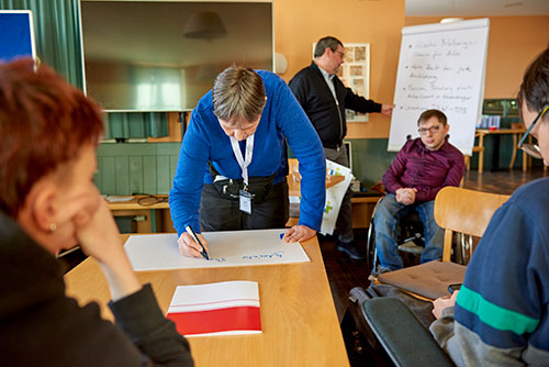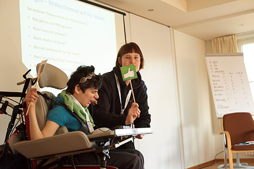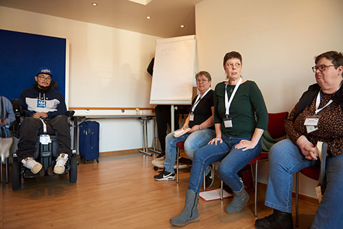 Arbeitsgruppen sind Gruppen von 15 bis 20 Personen, die sich gemeinsam über ein Thema informieren und unterhalten. Bei den meisten Arbeitsgruppen während dieses Kongresses war es so, dass diese Arbeitsgruppen von 1 oder 2 Menschen mit oder ohne Behinderung geleitet wurden.