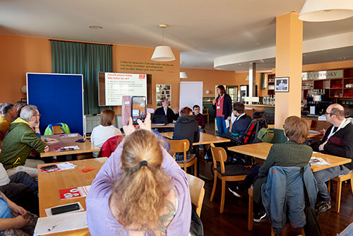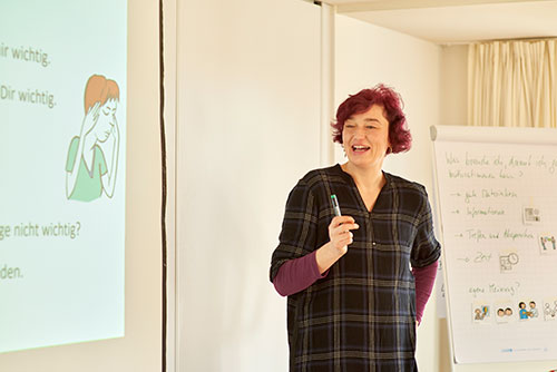 Dieser Referenten oder diese Referentinnen erzählten dann zuerst von ihren Erfahrungen mit dem Thema. Danach war ausreichend Zeit für ein gemeinsames Gespräch.