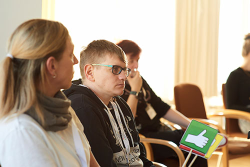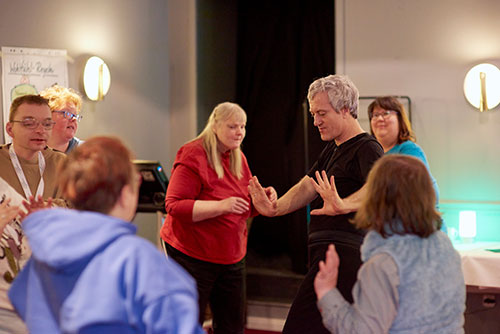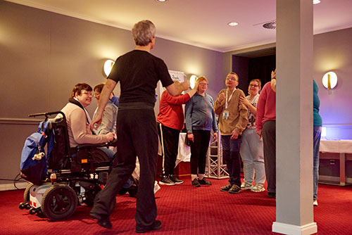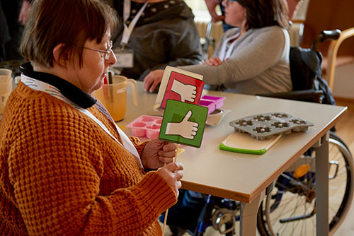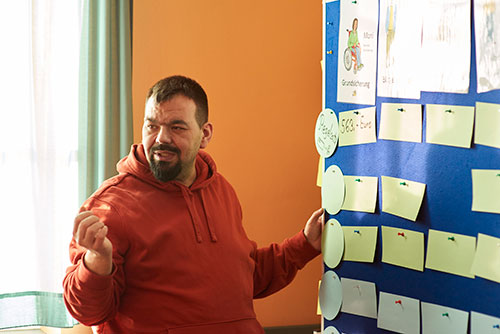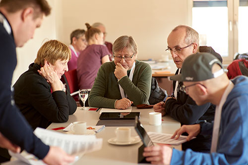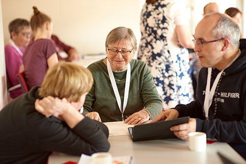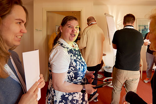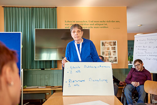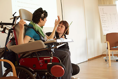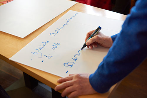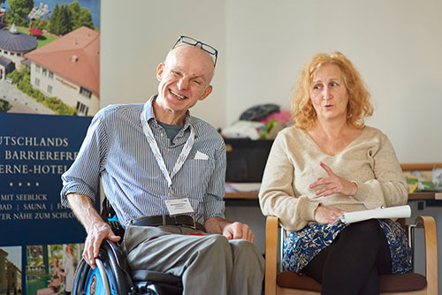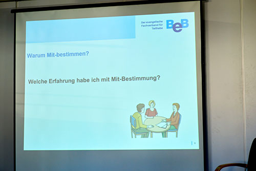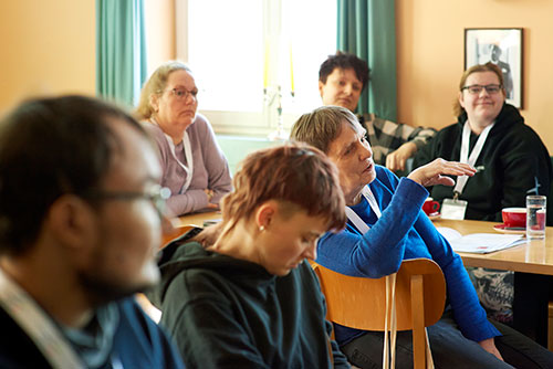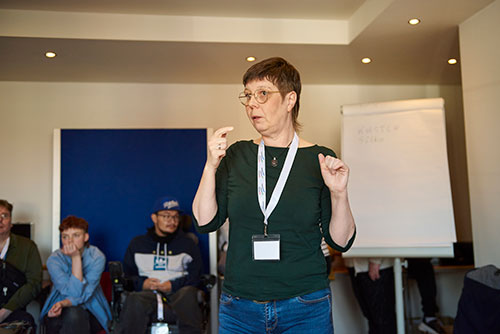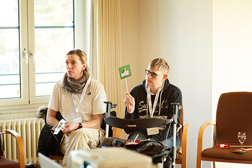 Arbeitsgruppen sind Gruppen von 15 bis 20 Personen, die sich gemeinsam über ein Thema informieren und unterhalten. Bei den meisten Arbeitsgruppen während dieses Kongresses war es so, dass diese Arbeitsgruppen von 1 oder 2 Menschen mit oder ohne Behinderung geleitet wurden.